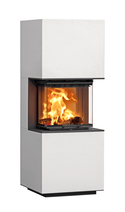 Kamin mit drei Glasflächen – dadurch mit einem freien Blick auf die Flammen aus allen Ecken des Raumes. Die Ummantelung lässt sich dank Klick-Lösung besonders einfach und ohne sichtbare Schraublöcher montieren. Die glatte Oberfläche lässt sich in der gewünschten Farbe grundieren. Weil ein Einbau direkt an der Wand möglich ist, müssen Sie sich keine Gedanken über Staubansammlungen machen. Das Design ist von schlichter Eleganz, und dank der Höhe der Brennkammer ist ein Einbau in unterschiedlichen Arten von Räumen möglich. Dank fugenloser Übergänge an den Glasscheiben des Einsatzes bleibt der Blick auf die Flammen ungestört.