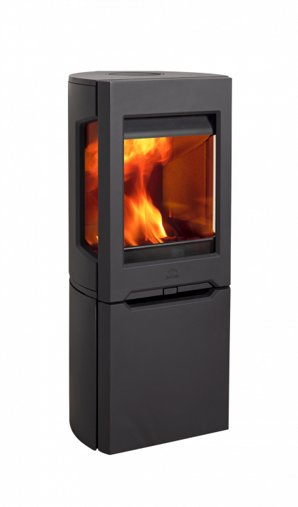 Benutzerfreundlicher, eleganter und moderner Kaminofen mit Glas auf drei Seiten. Der Kaminofen verfügt über Luftspülung und Spezialglas an den Seiten mit einer Beschichtung, die dazu beiträgt, dass die Scheiben sauberer bleiben und die Flammen von mehreren Seiten im Raum gut sichtbar sind. Ein Ventil erleichtert das Anzünden und Feuern. Der Kaminofen eignet sich besonders für moderne Haushalte und zum Heizen mit geringer Leistung. Als Zusatzausstattung kann eine dekorative Oberplatte aus wärmespeicherndem Speckstein aufgesetzt werden, die die Wärme länger hält. Hinter der Sockeltür verbirgt sich ein praktischer Stauraum.