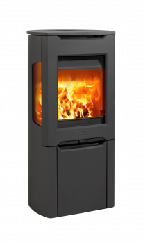 Kaminofen aus Gusseisen, der sich besonders gut für moderne Niedrigenergiehäuser eignet, mit integrierter Zuluft durch den Schornstein. Der von der Agentur Hareide Design entworfene Kaminofen hat drei Glasscheiben und zeichnet sich durch ein zeitloses Design aus. Er verfügt über eine Luftspülung, die zu sauberem Glas beiträgt, und eine praktische und einfache Aschelösung, die das Entleeren der Asche erleichtert. Der Kaminofen ist auch mit einem magnetischen Türschließmechanismus und einem Kaltgriff ausgestattet, der die Handhabung der massiven Tür erleichtert.