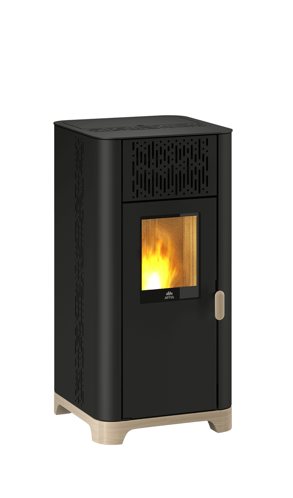 Jøtul PF 734 ist ein Pelletofen mit klaren und einfachen Linien, wobei der Schwerpunkt auf funktionalen Designdetails liegt, die wechselnden Trends standhalten können. Die skandinavischen Designöfen manifestieren sich in den Materialien; wählen Sie zwischen mattschwarzem Stahl oder kortenfarbenen Seitenwänden, perfekt kombiniert mit einem Sockel aus dem Lieblingsholz der Skandinavier - weiß gekalkter Eiche. Der Pelletofen ist mit einer Zwangslüftung ausgestattet, und über die Ventilatoren an den Ober- und Seitenwände wird die Wärme schnell im Raum verteilt. Das Muster in den Paneelen lässt Ästhetik und Funktion miteinander einhergehen und stellt das raue Wetter des Nordens dar, mit den peitschenden Regentropfen des Herbstes, die an der Fensterscheibe herunterrollen. Der Abstand zu brennbaren Stoffen wird auf ein absolutes Minimum beschränkt, wodurch ein Pelletofen entsteht, der leicht zu platzieren ist.