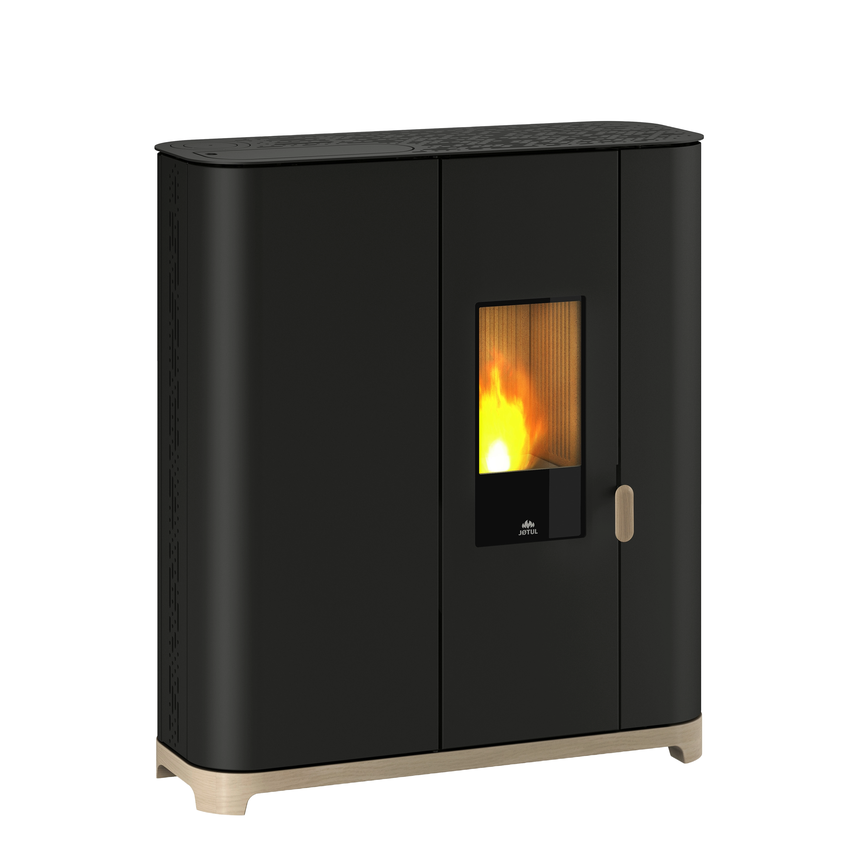 Freunde von abgerundeten Linien und des skandinavischen Flairs entscheiden sich für den JØTUL PF 912 S. Seine Lüftungsschlitze und Holzoberflächen verleihen dem Ofen ein elegantes Aussehen mit einzigartigem Stil. Wählen Sie je nach Vorliebe zwischen 2 Ausführungen: der mattschwarzen Stahl- oder der Cortenstahlverkleidung. Dank seiner Kompaktheit findet der Ofen auch in schmalen Fluren und Korridoren Platz. Sein gusseiserner Heizkörper ermöglicht den Betrieb in natürlicher Konvektion, was maximalen akustischen Komfort garantiert. Eine selbstreinigende Brennschale reduziert den Pelletverbrauch und bietet Ihnen große Wartungsbequemlichkeit. Durch die Warmluftverteilung werden auch angrenzende Räume in Ihrem Zuhause beheizt.
