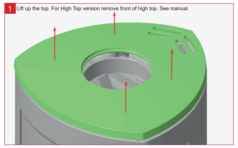Bei der Montage der Serien Jøtul F360 Advance und Jøtul F370 Advance mit Magnettüren kann es vorkommen, dass die Schraube für das obere Scharnier die falschen Abmessungen hat.