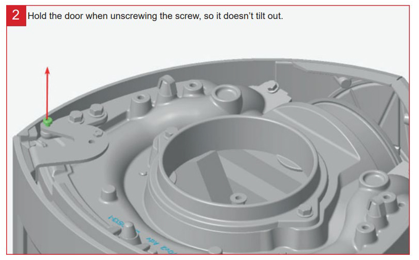 2. Stützen Sie die Tür und entfernen Sie die Schraube.