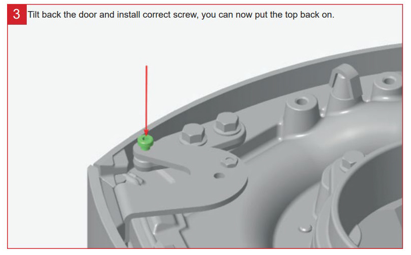 3. Ersetzen Sie die Schraube und bringen Sie die obere Abdeckung wieder auf dem Produkt an.